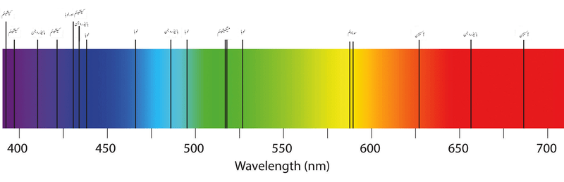 The secret of dark lines was discovered by Gustav Kirchhoff (1824-1887). Different chemical elements can absorb one or more particular kind of light (light in one particular wavelength). Which means if we figure out what element is absorbing the light in the dark region, we will know the components of a star. To explain more precisely, when a star in the sky is burning its fuel in its core (nuclear reaction like a nuclear bomb), all kinds of light are emited. But when the light is going through the surface of the star, some elements will absorb part of light, as we talk about before. so the light we see in our eye actually carrys lots of information about the star it comes from.